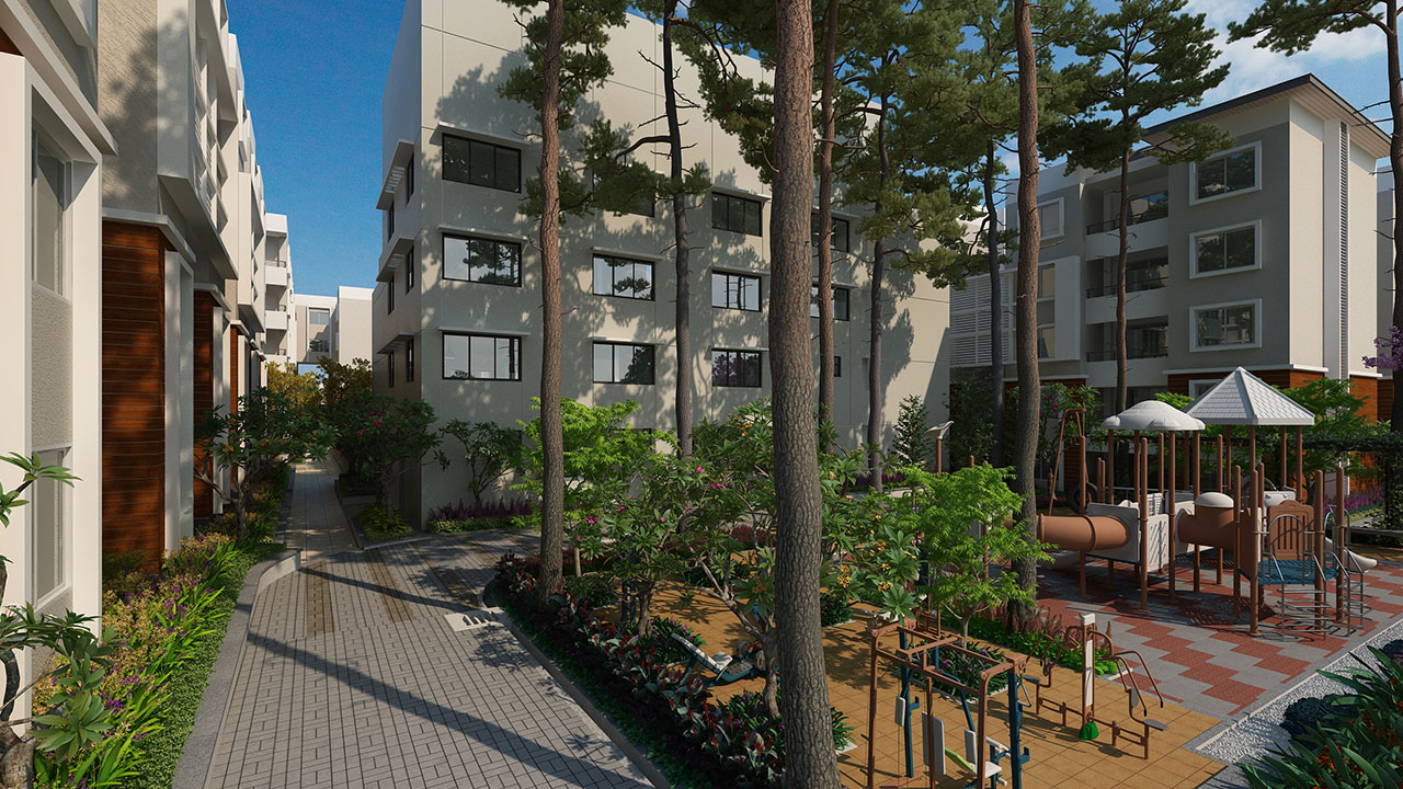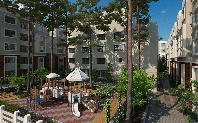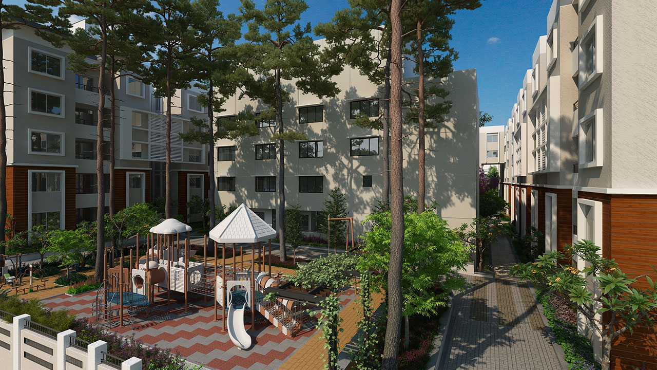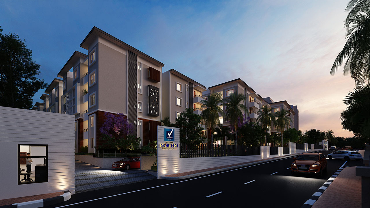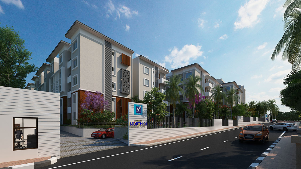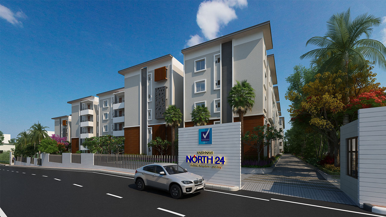 Welcome to Vaishnavi North24, our latest offering in exquisite urban living. Nestled in a spacious 2.72 acres plot, the 3 blocks of apartments around a vast central courtyard represent the best living spaces in North Bangalore. Vaishnavi North 24 offers Vastu-compliant homes with excellent layout that allows for plenty of sunlight and fresh air to enter your homes. The project has been designed to be environment friendly and has its own sewage treatment plan and rain water harvesting system.